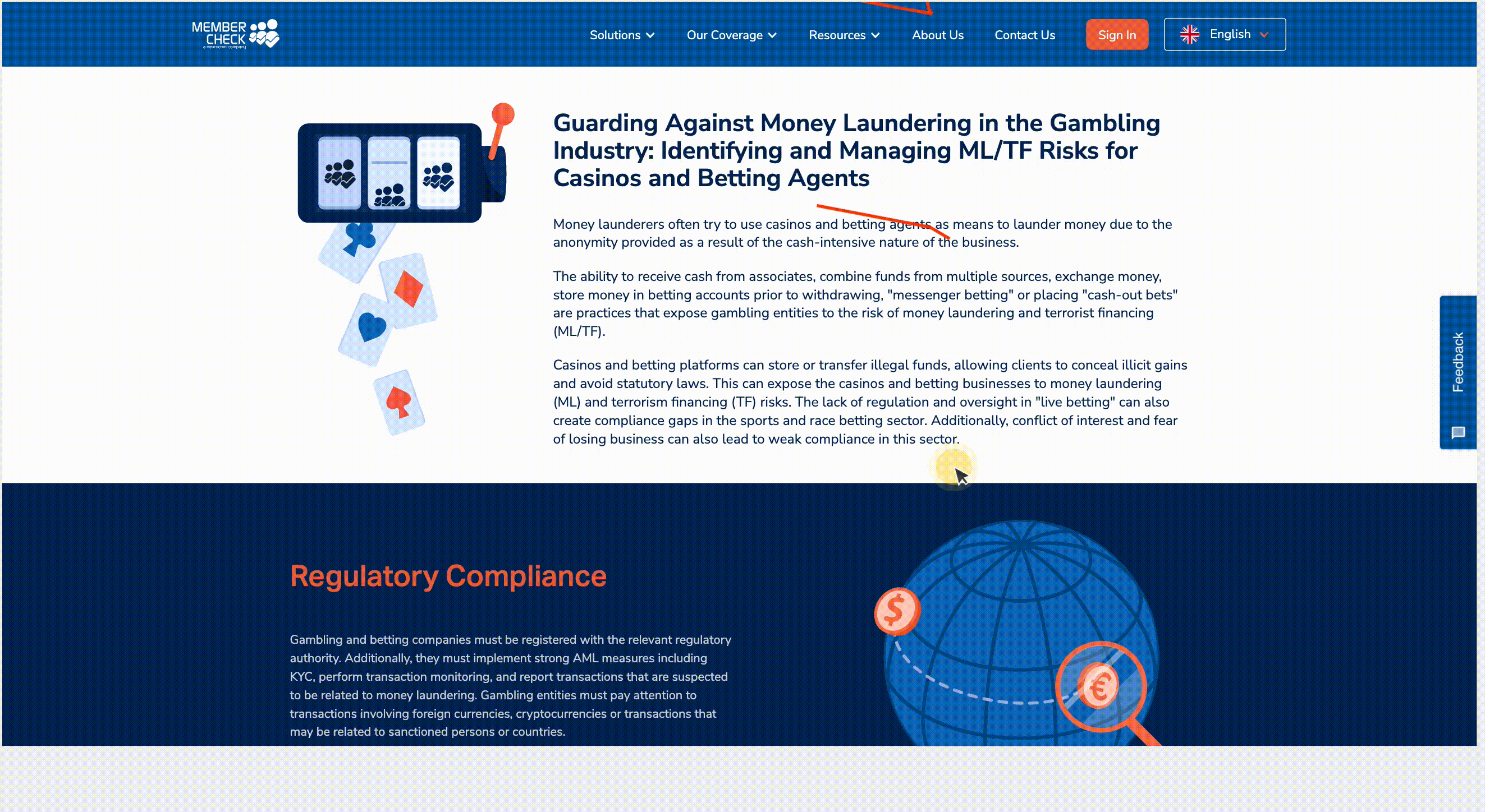 I designed and developed an interactive map for MemberCheck’s Country Coverage page in collaboration with content writers and the marketing manager. Using my front-end skills and an open-source JavaScript library, the map enhances UX and educates on global AML and CTF regulations.